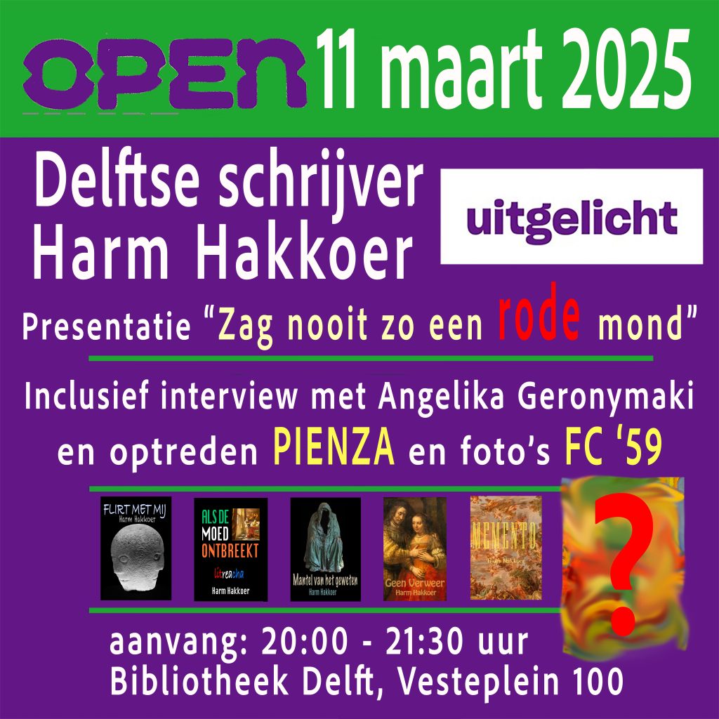 De lancering van de zesde roman van harm heeft tijdens de boekenweek feestelijk in de bibliotheek van Delft plaatsgevonden.