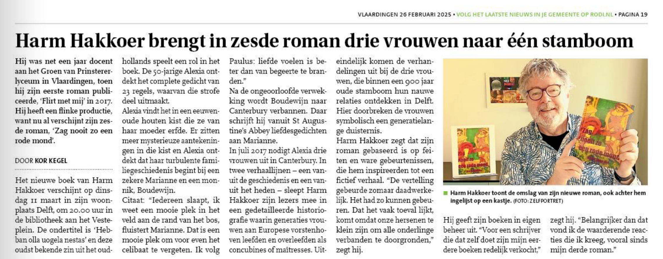 De lancering van de zesde roman van harm heeft tijdens de boekenweek feestelijk in de bibliotheek van Delft plaatsgevonden.